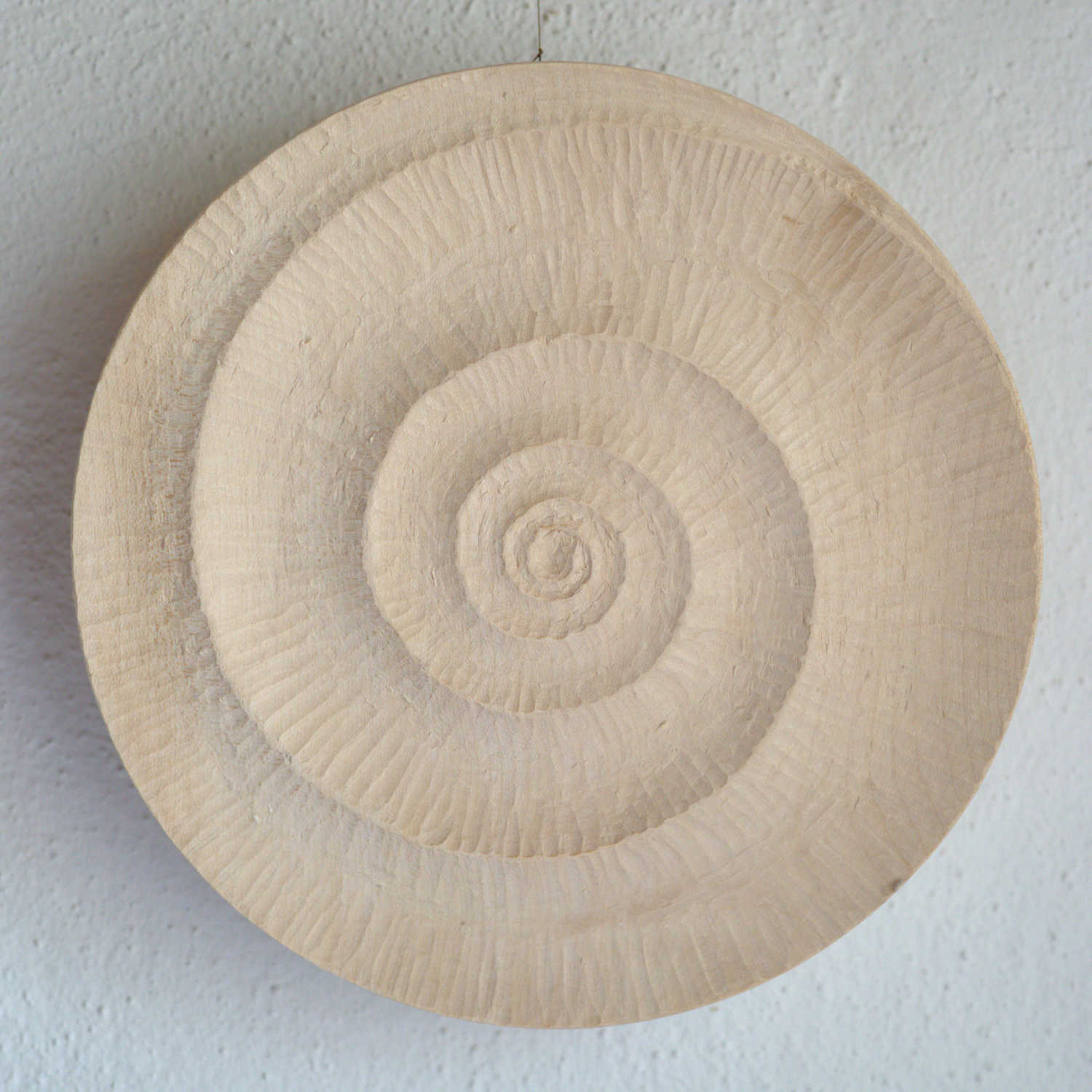 Das Kunstobjekt ist ein Einzelstück aus Ahornholz. Die Oberfläche ist unbehandelt. Durchmesser: ca. 25cm; Höhe: ca. 4cm