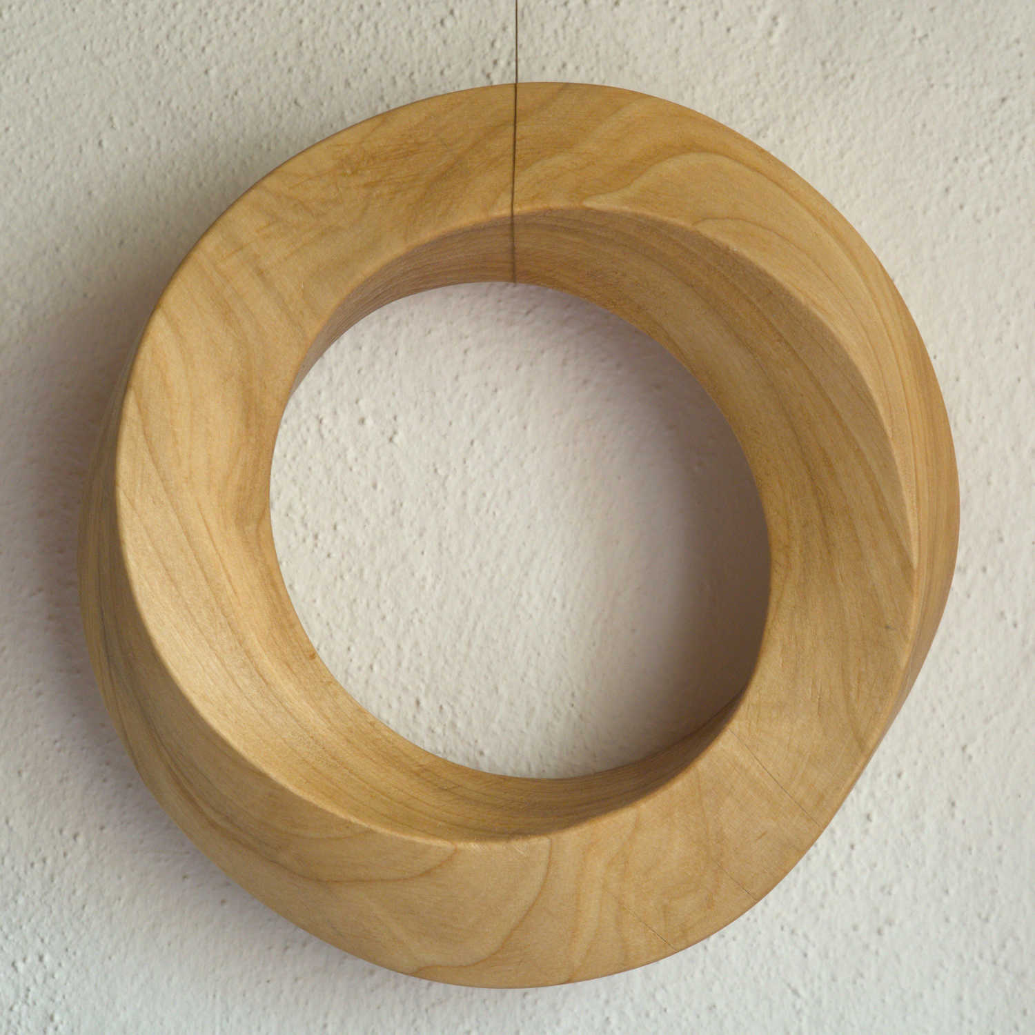 Das Kunstobjekt ist ein Einzelstück aus Pappelholz. Die Oberfläche ist mit AURO PurSolid Hartöl behandelt. Durchmesser: ca. 26cm; Höhe: ca. 6cm